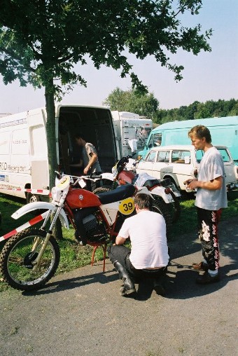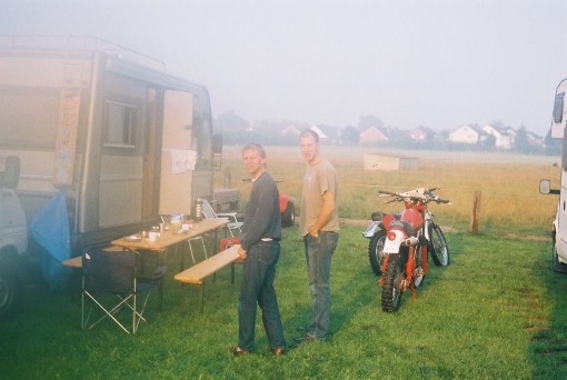 Anreise am Freitag den 3.September Abends vor der technischen Abnahme vorne eine Puch GS 125 Baujahr 1973 hinten eine Puch GS 125 Baujahr 1978 die von meinem Cousin gefahren wurde