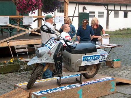 Nachdem mein Cousin vom letzten Jahr leider nicht mitfahren konnte ( Hochzeit , aber nicht seine eigene ) sprang sein Bruder ein , und machte einen Tag des Zweirades daraus. Morgens um 6 Uhr von Köln ins Bergische Land , dort noch ein paar fehlende Teile einpacken um auf direktem Weg nach Hamm zufahren. Knappe 3 Stunden Geländefahrt bei schweisstreibenden Wetter, um nach abschließenden Spanferkelessen wieder mit seiner guten alten Suzuki gen Heimat zu düsen.