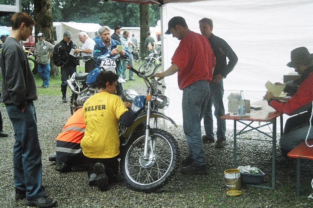 Bis auf die vordere Startnummertafel wurde nichts beanstandet - zu klein und etwas scharfkantig Nach der Fahrerbesprechung gab es am Nachmittag die Beschleunigungsprüfung mit anschließender Trialpassage