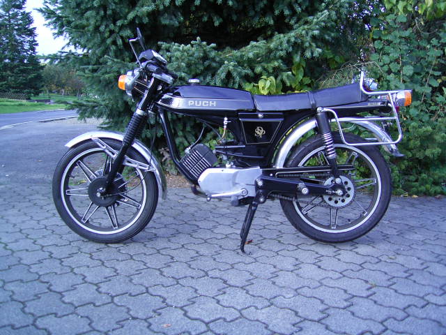 Mit Scheibenbremse vorne und den offenen Sportfederbeinen war auch das Topmodell 6 SL ausgestattet. Darüber hinaus hatte dieses Modell Leichtmetall - Gussräder sowie auf der tiefschwarzen Lackierung das SDP - Designzeichen, das den damals so erfolgreichen Lotus - Formel 1 Rennwagen ( JPS - John Player Special ) nachempfunden war.
